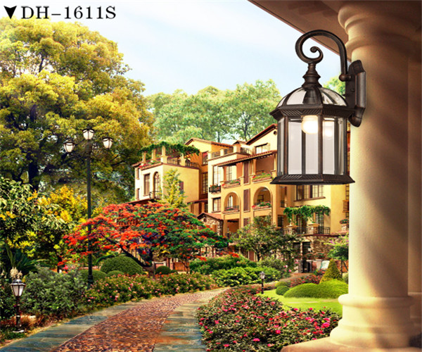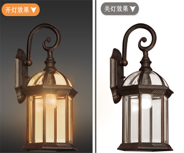 帝之苑戶外壁燈DH-16115歐式庭院燈開燈、關(guān)燈效果圖