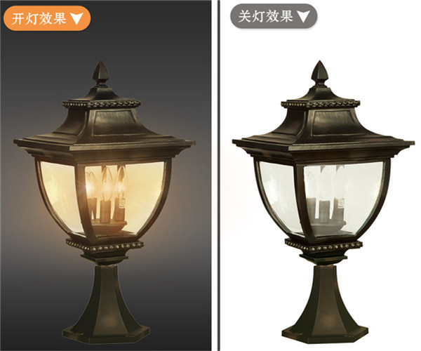 帝之苑柱頭燈DH-2063M戶外照明燈開燈、關(guān)燈效果圖