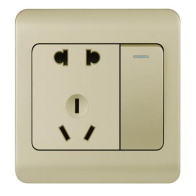 施瑯格飛龍系列一位單控帶16A三極插座,亮面注塑,安全防老化