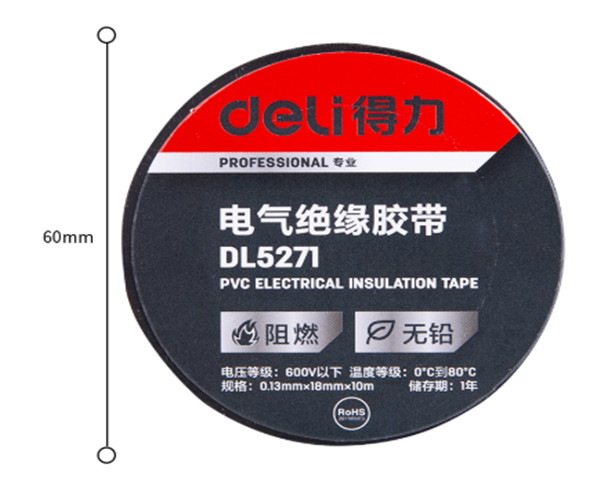 得力DL5271專業(yè)級電氣絕緣膠帶(黑)阻燃材料,使用更放心