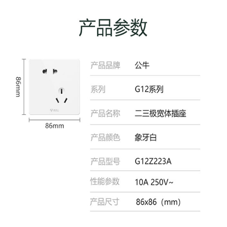 公牛(BULL) 開關(guān)插座 G12系列 10A斜五孔插座二三極