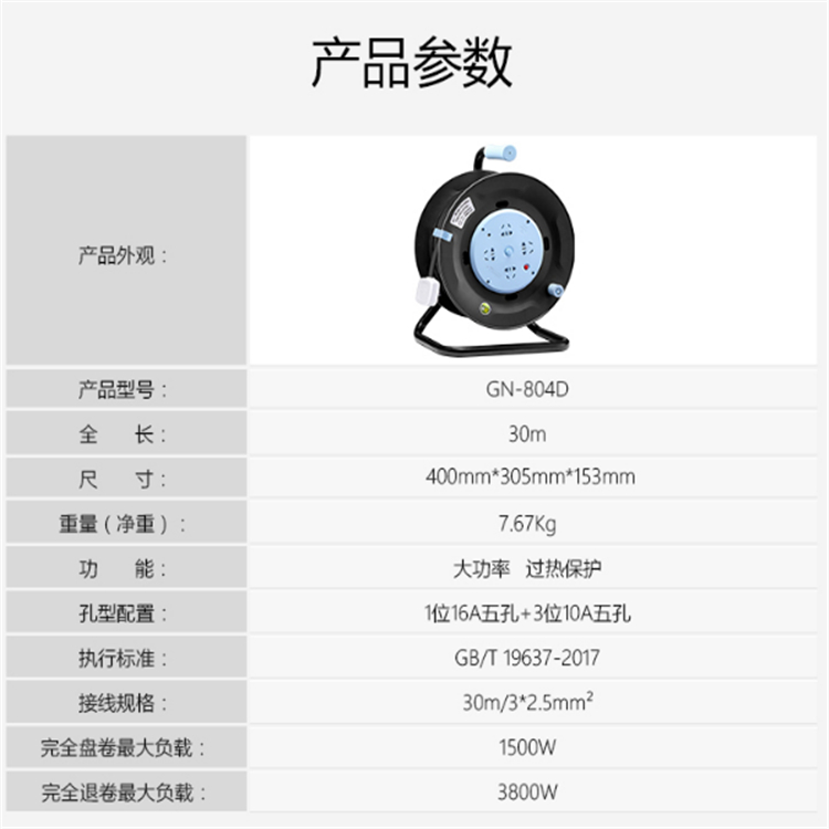 過熱保護電纜卷盤插座商務(wù)品質(zhì)感