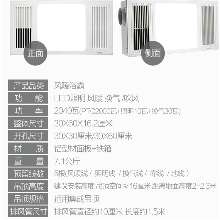 - 型號名稱30*60集成吊頂風暖浴霸-白色
