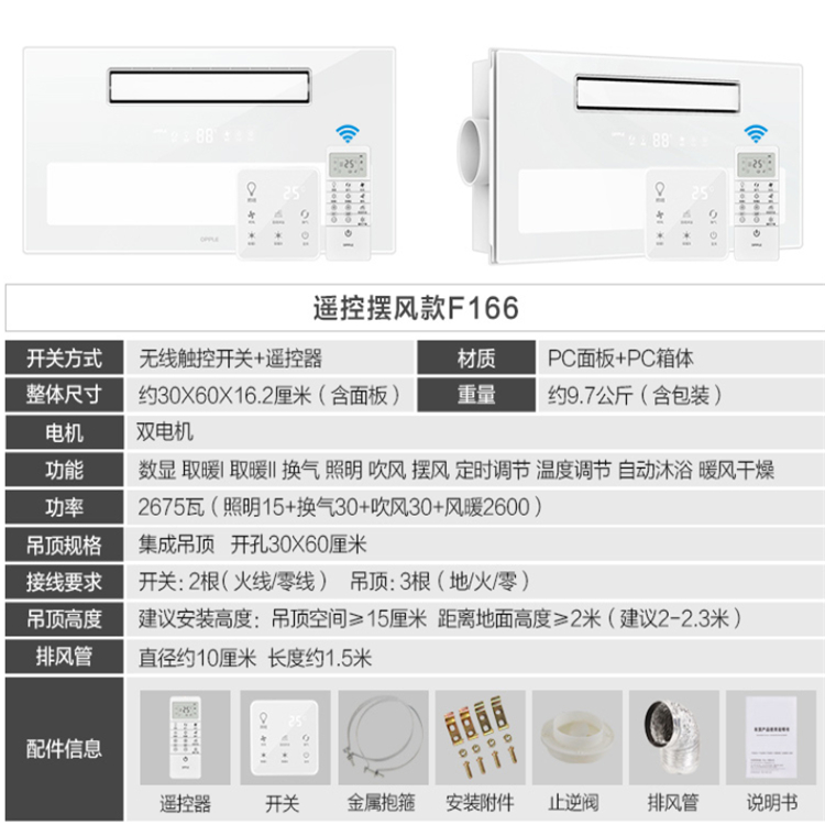 - 型號名稱雙控款浴霸+高端方燈+高端長燈+遙控涼霸