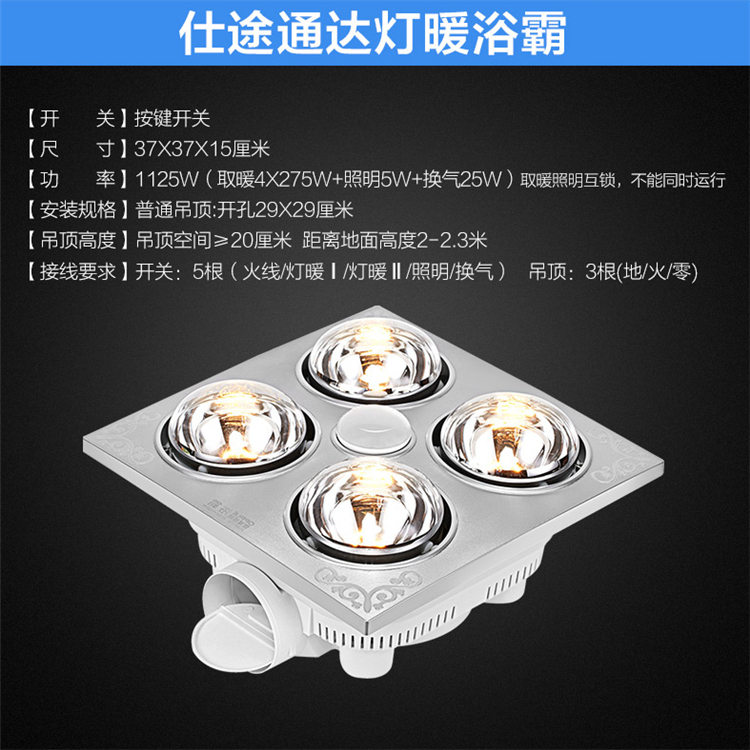 普通吊頂浴霸 風(fēng)暖浴霸 取暖換氣照明三合一 仕途通達(dá)