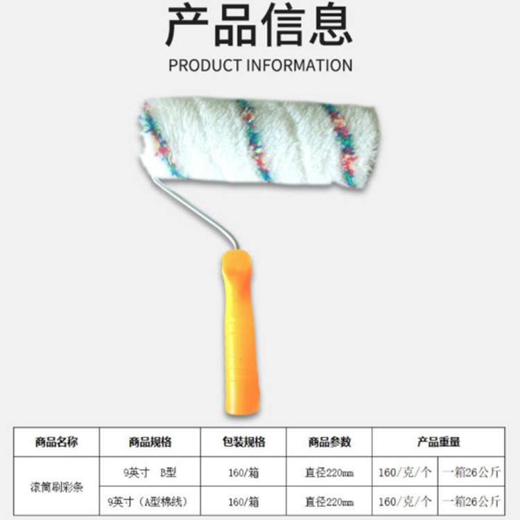 格瓦斯 滾筒刷彩條,轉(zhuǎn)動活靈,涂刷平穩(wěn),適合各種墻壁、地面、器物。