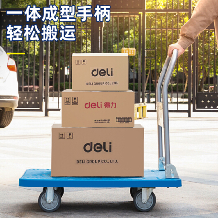 得力(deli) 全新料平板車耐用手推車?yán)涇囆⊥宪囁妮啺徇\(yùn)車60*90cm承重約600斤
