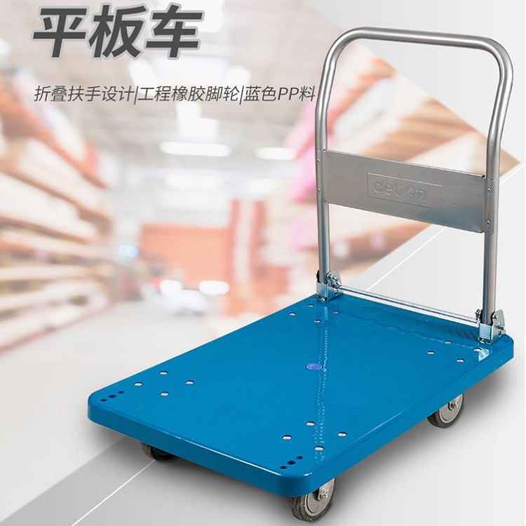 得力工具全新料平板車耐用手推車?yán)涇囆⊥宪囁妮啺徇\(yùn)車60*90cm