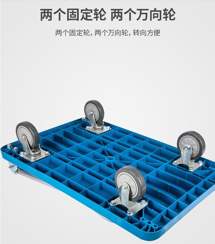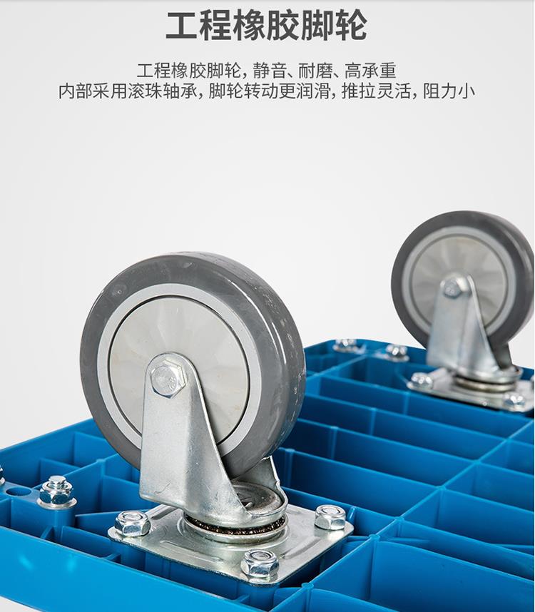 平板車采用藍(lán)色PP料,環(huán)保,耐沖擊、耐腐蝕