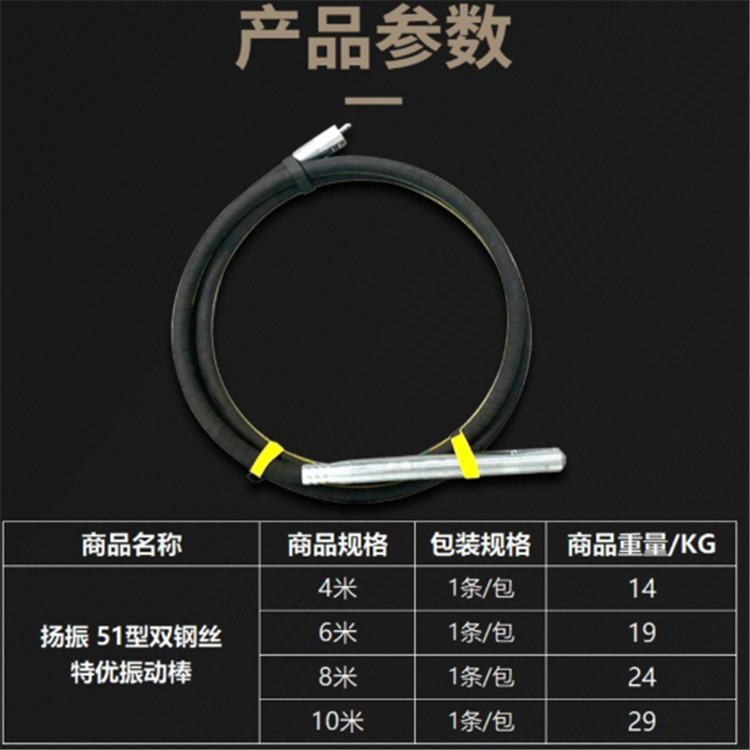楊振51型優(yōu)質振動棒是廣泛使用于道路、橋梁、隧道、樓層基礎和各種混凝土梁柱及預制構件現(xiàn)場澆注施工的重要工具。
