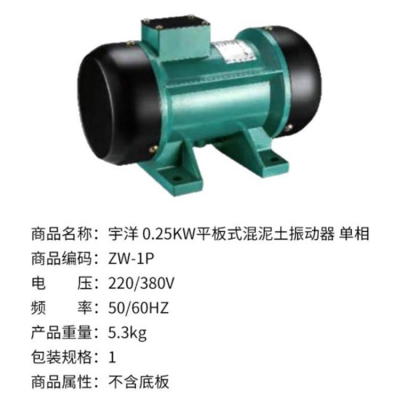 宇洋0.25KW平板式混泥土震動(dòng)棒單相ZW-1P小型汽油機(jī)或電動(dòng)機(jī)振動(dòng)器為動(dòng)力,是各種混凝土現(xiàn)場施工中不可缺少的理想工具。