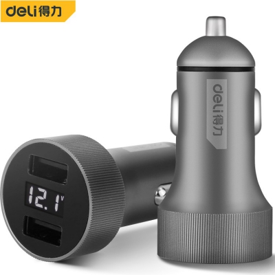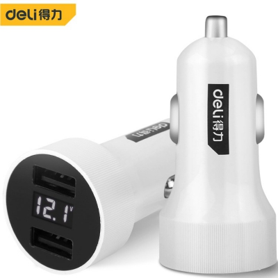 得力車載USB充電器數(shù)顯車載USB充電器通用多功能智能手機快充充電器