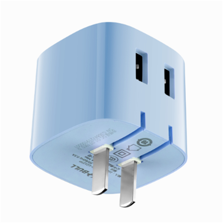 公牛自動(dòng)防過(guò)充USB充電器高質(zhì)感的時(shí)尚藍(lán),時(shí)尚且耐看,上下為磨砂觸感的啞光
