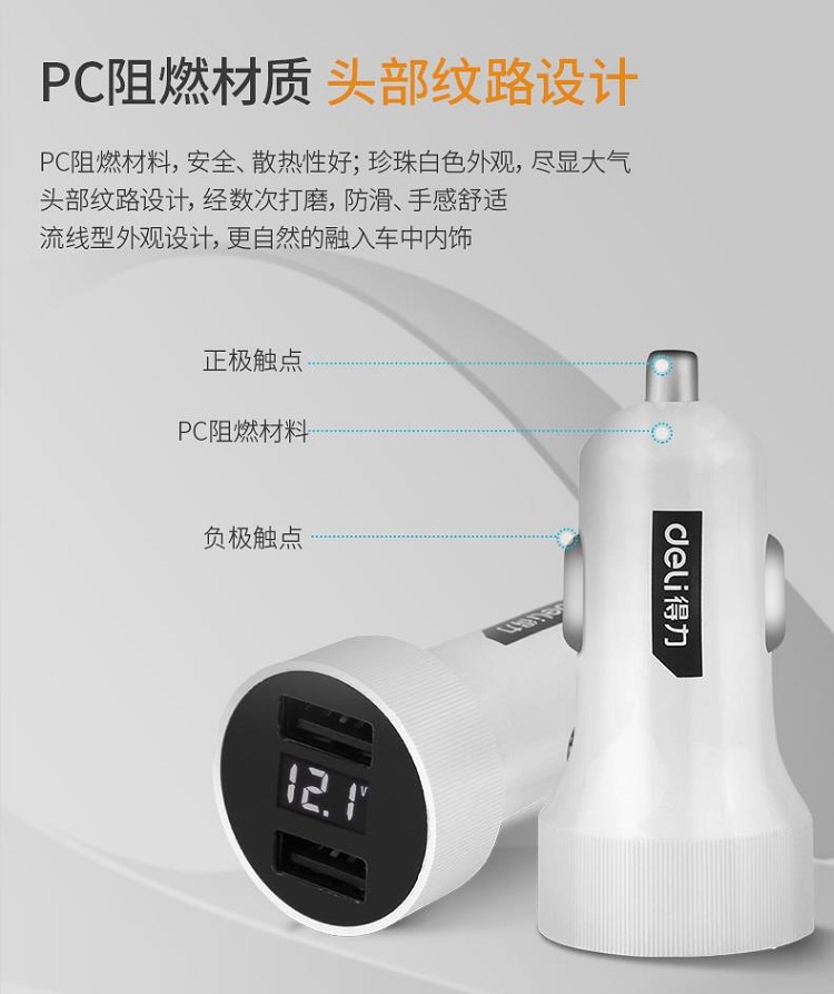 得力數(shù)顯車載充電器手機(jī)快充點(diǎn)煙轉(zhuǎn)換插頭24v汽車用品usb接口快速車充