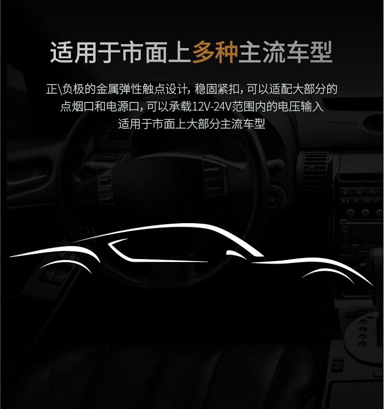 usb接口快速車充采用PC阻燃材質(zhì),頭部紋路設(shè)計(jì)