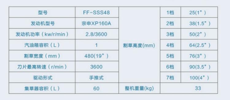 汽油草坪機(jī)FF-SSS48相關(guān)參數(shù)