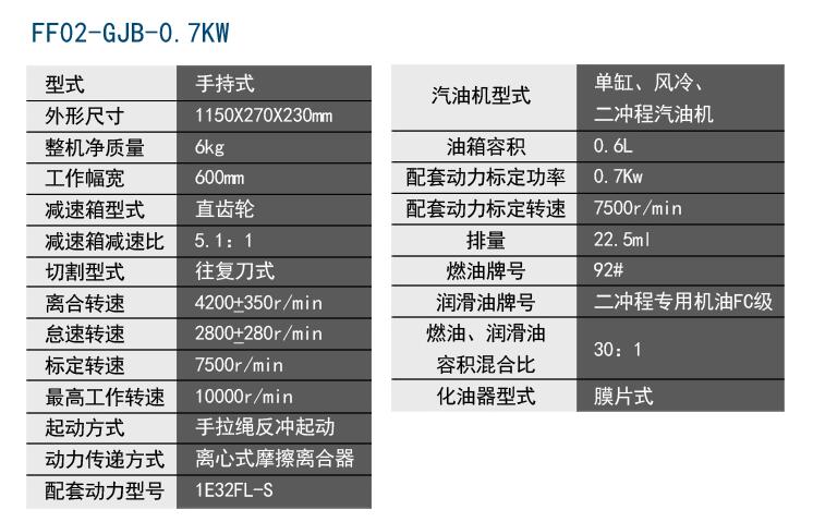 東成汽油修枝剪FF02-GJB-0.7KW相關(guān)參數(shù)