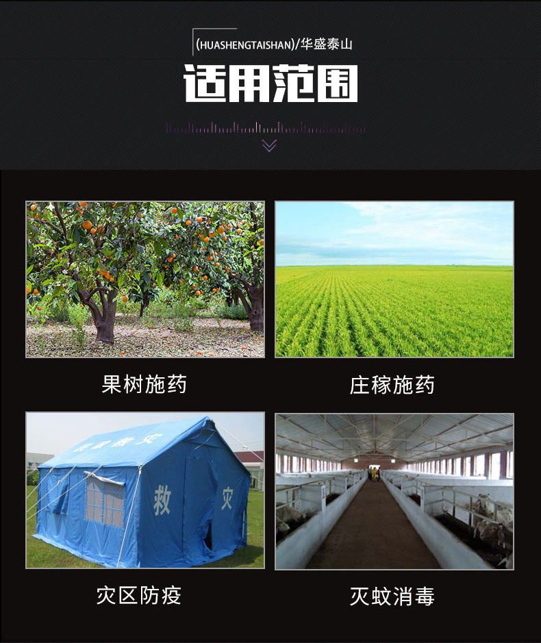 適合農(nóng)業(yè)及經(jīng)濟(jì)作物等多方面的病蟲(chóng)害防治,也適合廣大農(nóng)藥生產(chǎn)企業(yè)用來(lái)農(nóng)藥實(shí)驗(yàn)、推廣、贈(zèng)品的使用。