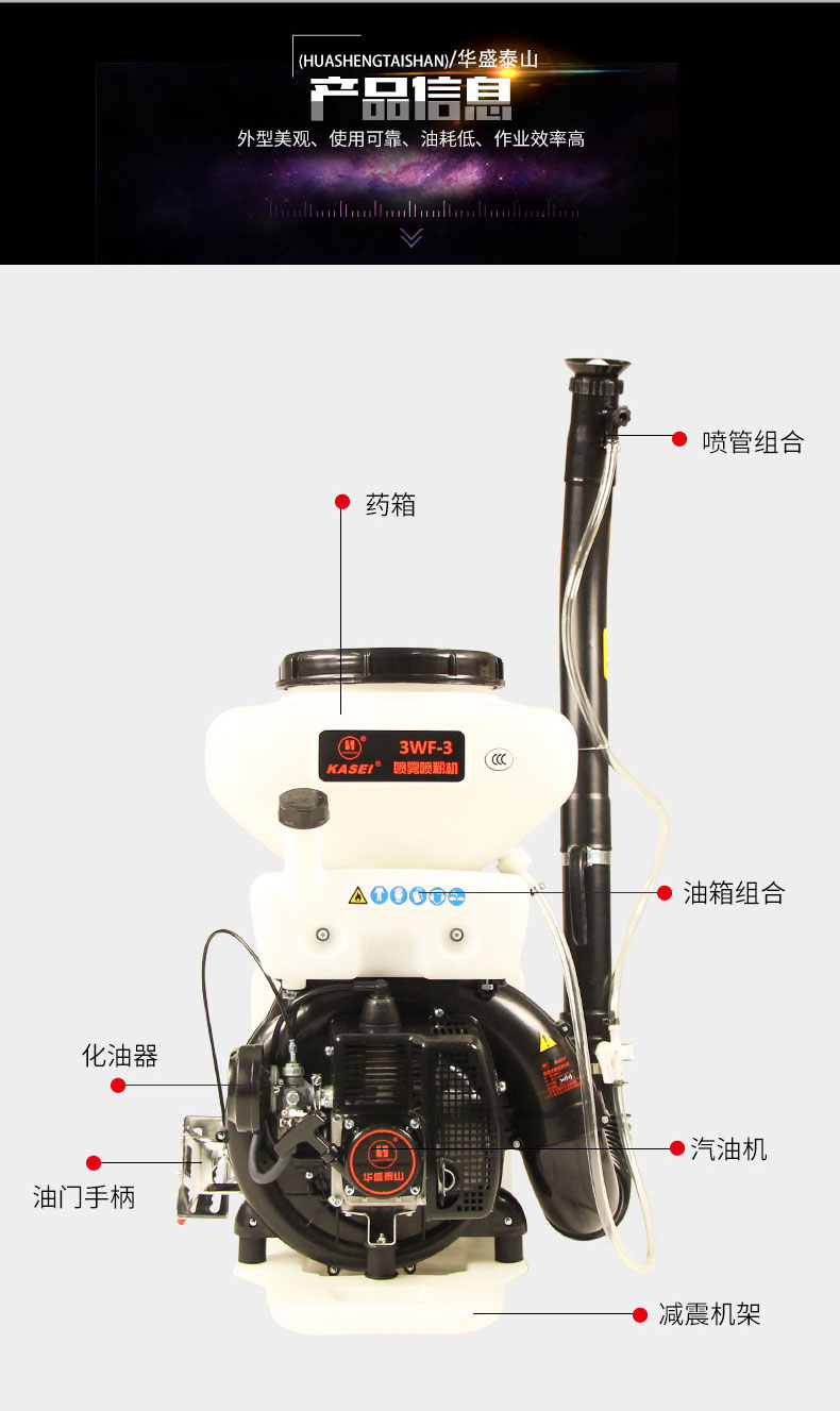 華盛泰山3WF-3機動噴霧器3WF-3A背負式噴霧機噴粉機揚肥器施肥機