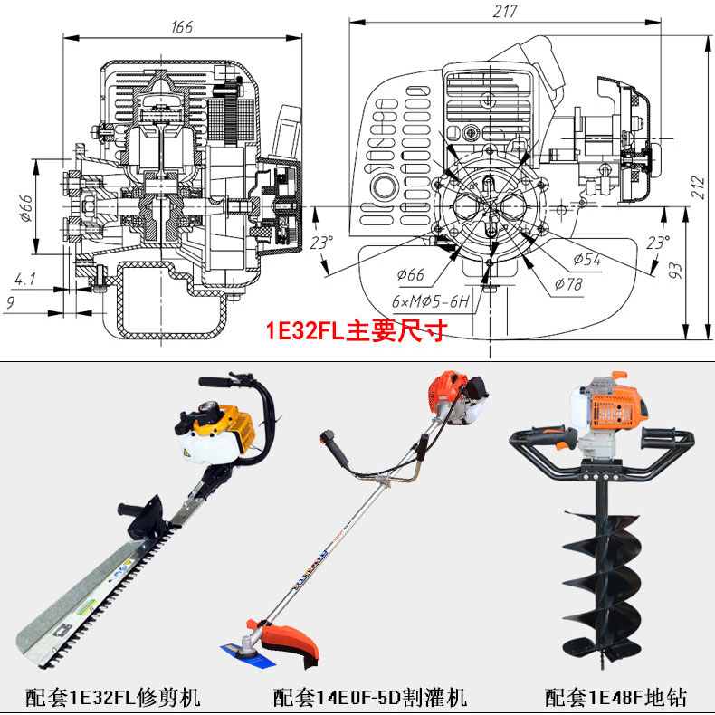 山東華盛割草機機頭二沖汽油機打草機頭修剪機頭挖坑機頭綠籬機頭
