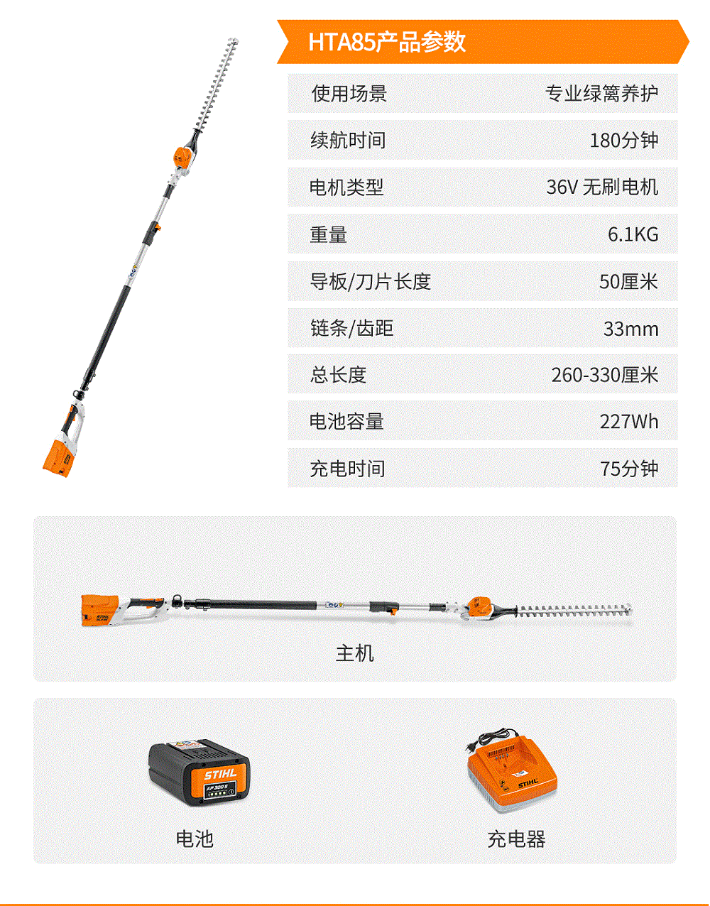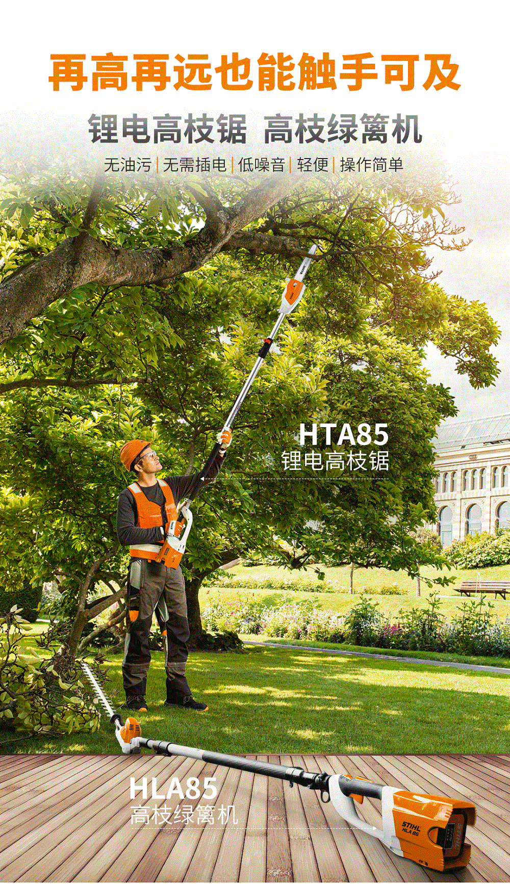 德國斯蒂爾STIHL 充電式商用鋰電高枝剪高枝綠籬剪HLA85/HTA85