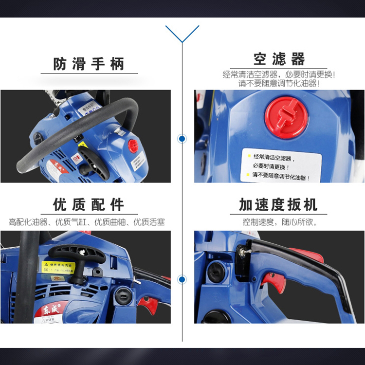 汽油鏈鋸產(chǎn)品四大特點(diǎn):防滑手柄、空濾器、優(yōu)質(zhì)配件、加速度扳機(jī)