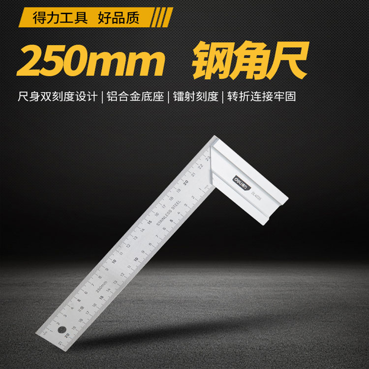 得力鋼角尺250mm直角尺90度不銹鋼加厚角尺姜堰區(qū)日月電器商行