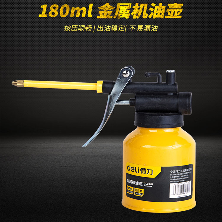 得力(deli)?金屬機(jī)油壺潤(rùn)滑油機(jī)油槍金屬長(zhǎng)嘴高壓尖嘴手動(dòng)注油壺加油壺180ml?DL2401梨園五金商行
