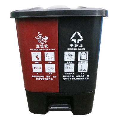 社區(qū)戶外腳踏加厚雙桶垃圾桶干濕分類上海辦公室家用廚房大小號垃圾箱姜堰家居用品