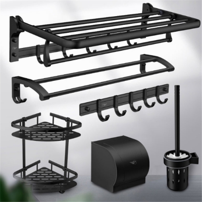 千騰毛巾架黑色衛(wèi)生間置物架浴室浴巾架不銹鋼五金掛件套裝江蘇華東供應(yīng)鏈管理有限公司