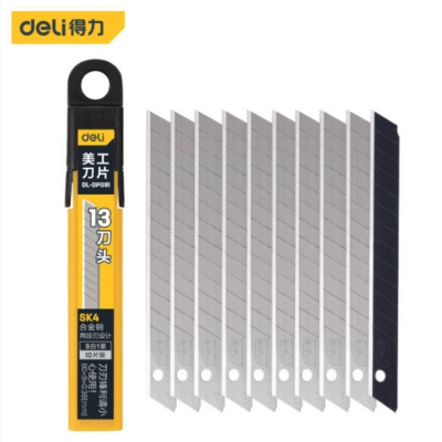 得力(deli)?13刀頭SK4合金鋼美工刀片/裁紙刀片?10片9mm?DL-DP091梨園五金商行