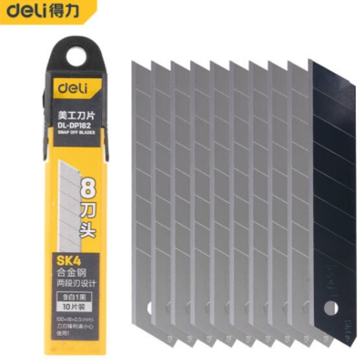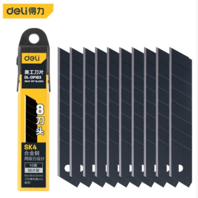 得力(deli)?8刀頭SK4合金鋼美工刀片/裁紙刀片?10片黑18mm?DL-DP183?梨園五金商行
