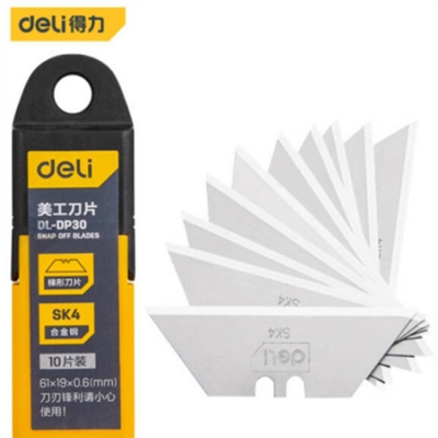得力(deli)?T型美工刀片?梯形美工刀片10片裝?SK4合金鋼重型割刀梯型刀片?DL-DP30梨園五金商行