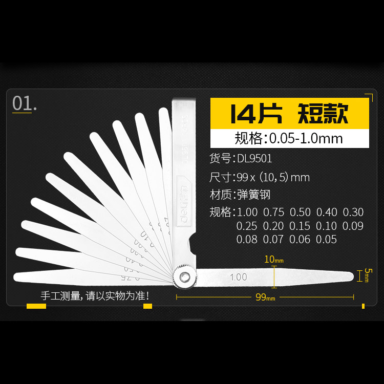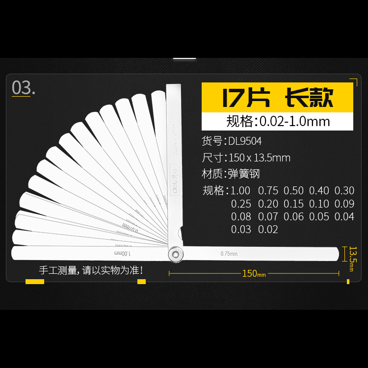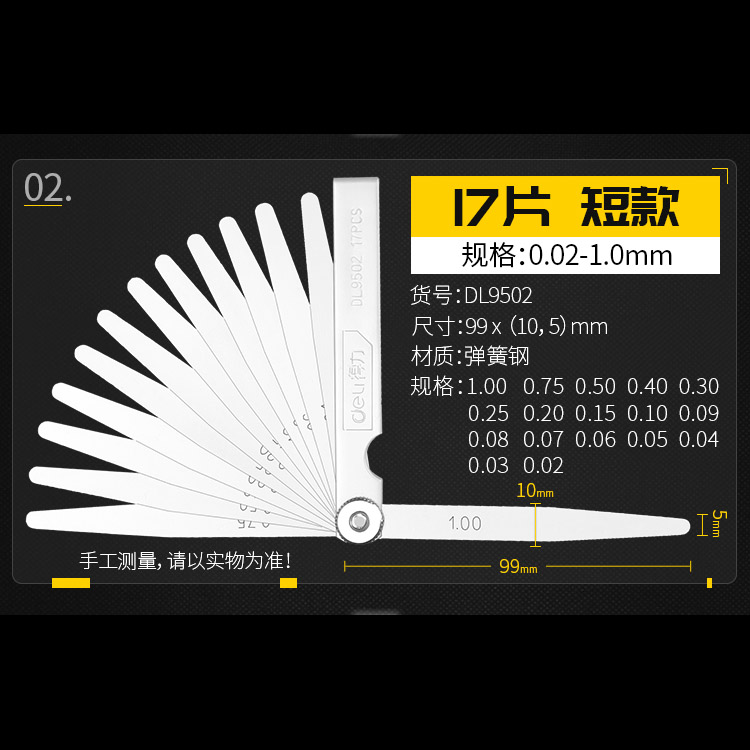 得力17件套塞尺150Lx0.02-1.00mm塞規(guī)塞尺片間隙尺厚薄規(guī)單片姜堰區(qū)日月電器商行