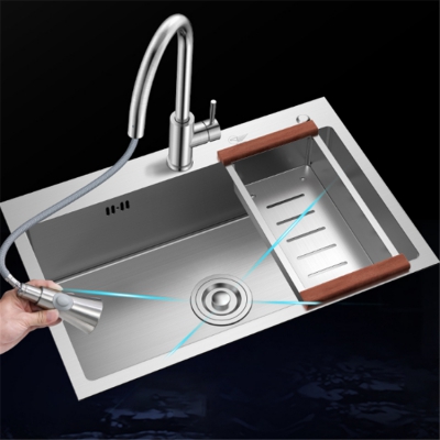 東鵬(DONGPENG)廚房304不銹鋼手工加厚水槽雙槽?洗手洗菜盆洗碗池拉伸龍頭單槽黑色納米臺(tái)下盆東鵬衛(wèi)浴