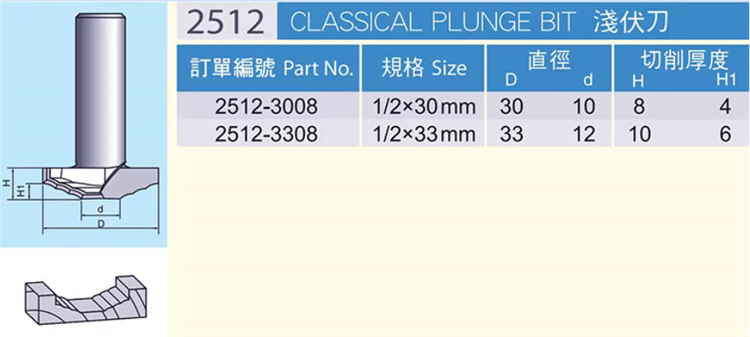 虎鯊2512淺伏刀 木工家具櫥柜吸塑門板花式線條開槽修邊刀