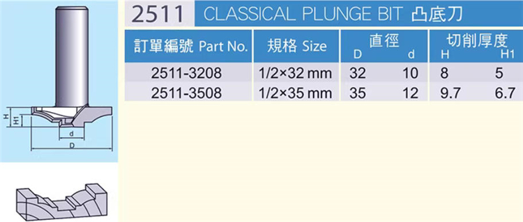 虎鯊2511凸底刀 木工家具櫥柜吸塑門板花式線條開槽修邊刀