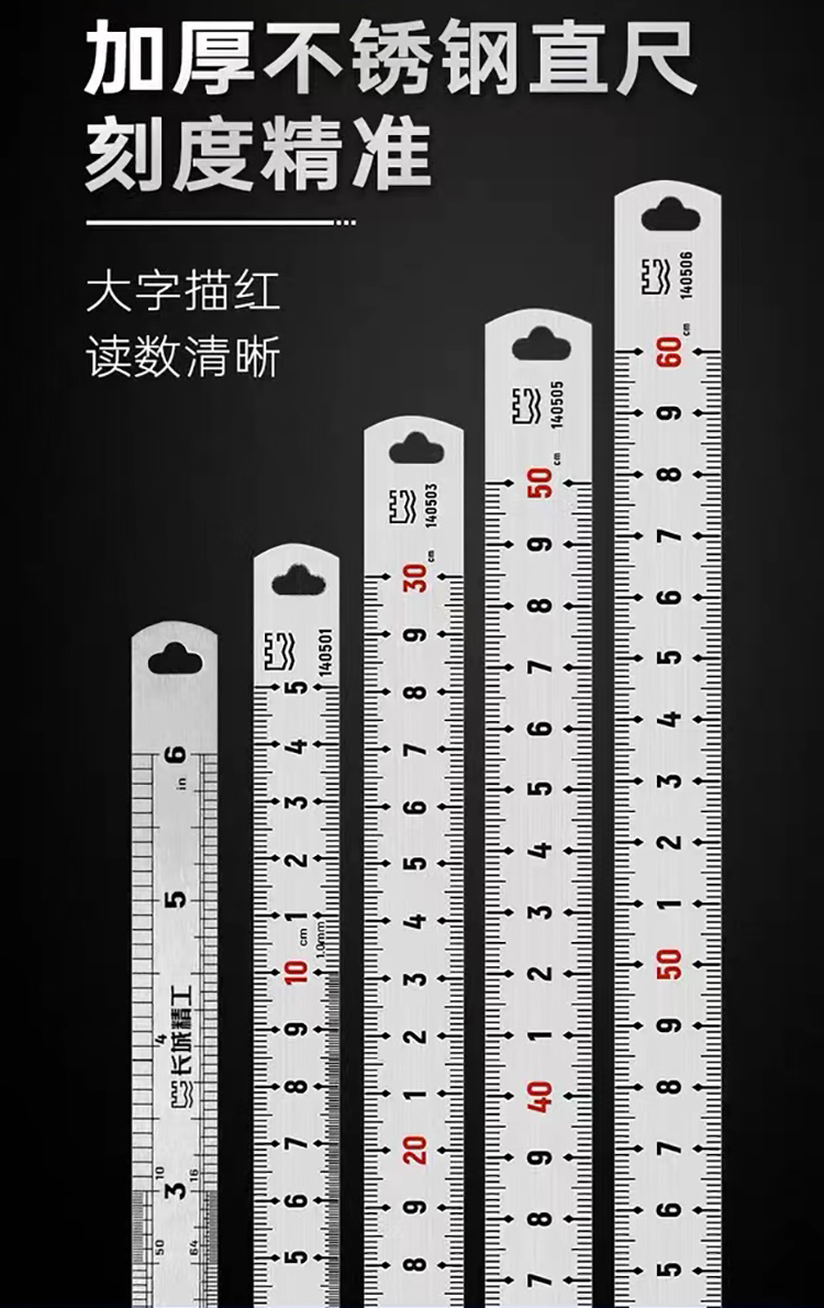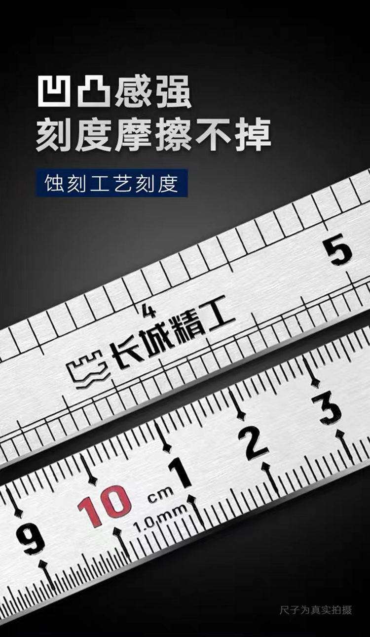 長城精工鋼直尺一米鋼尺1米15cm不銹鋼鋼板尺600mm加厚剛尺子30cm