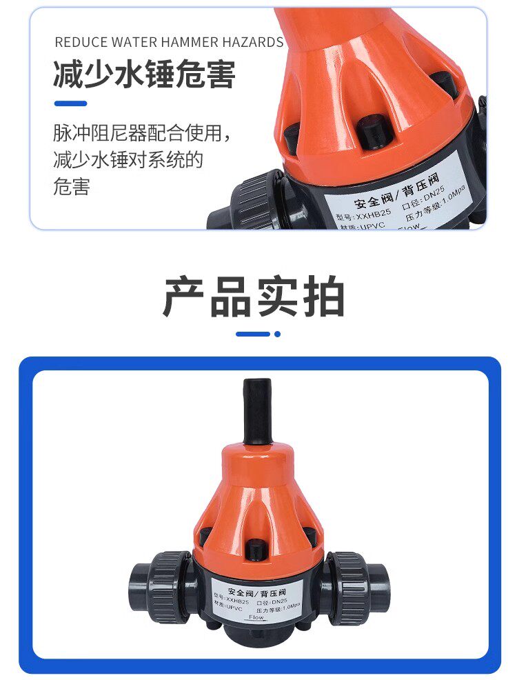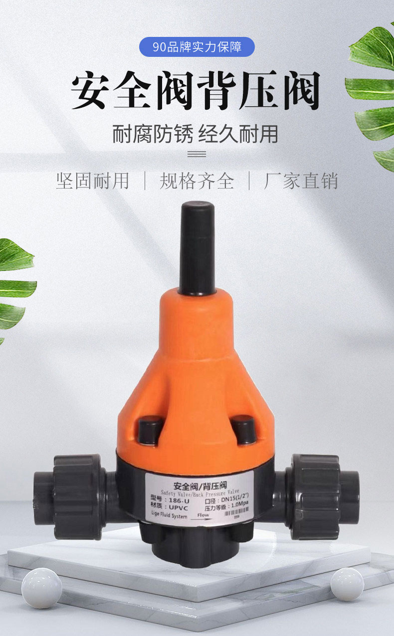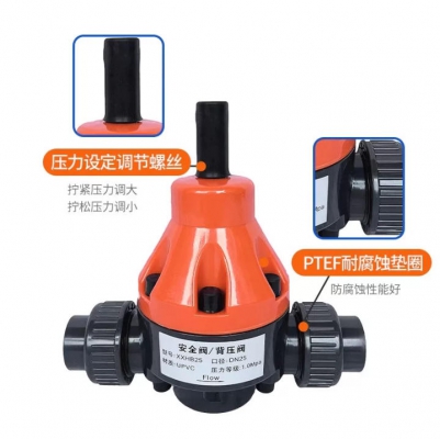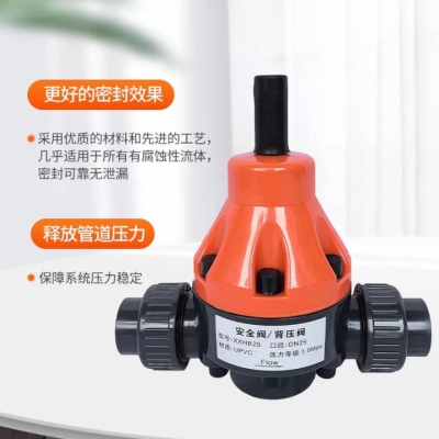 耐酸堿 UPVC安全閥 背壓閥化工專用 活接式 橙色綠色 泄壓閥