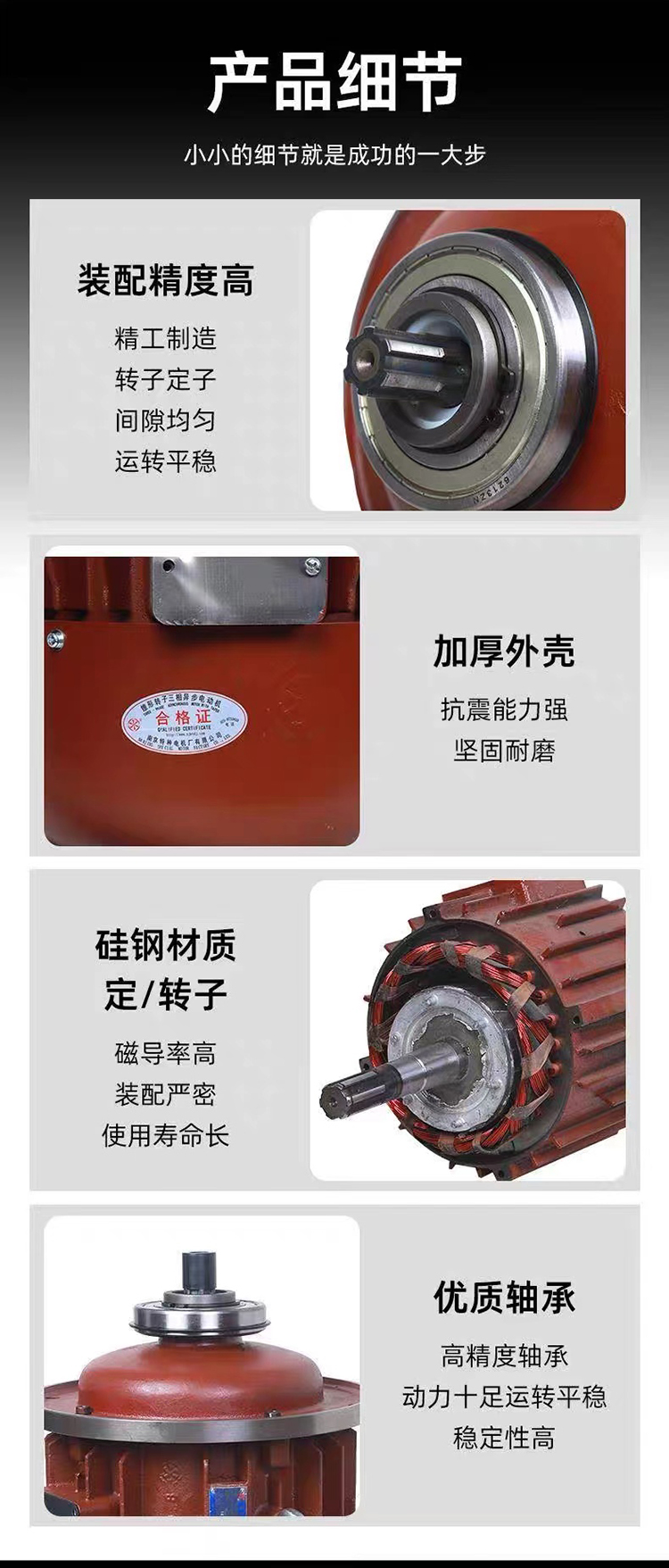 電機高精度一次成型轉(zhuǎn)子,轉(zhuǎn)速輕巧,噪音低。