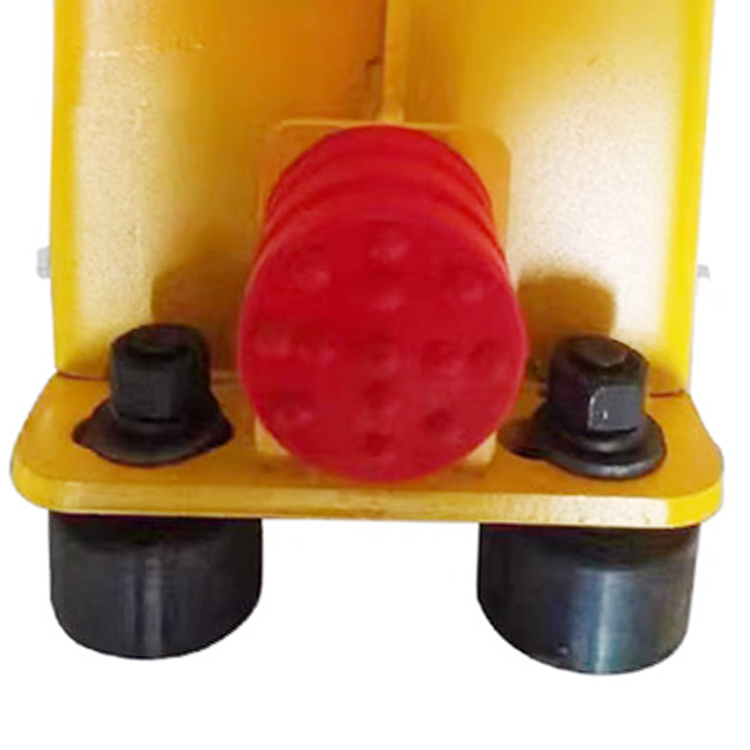 起重機(jī)防脫軌裝置加厚鋼板,調(diào)質(zhì)軸承鋼輪,聚氨酯緩沖器。