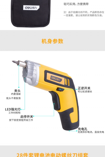 得力3.6V無線單鋰電電鉆充電鉆手電鉆電起子電動螺絲刀充電批28件套
