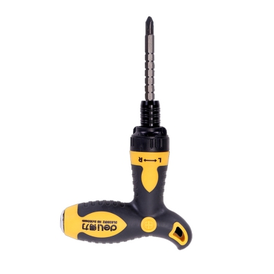 得力T型棘輪伸縮兩用螺絲刀批迷你十字一字雙頭起子改錐五金工具